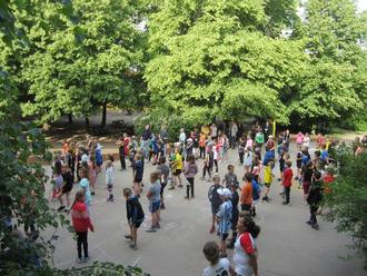 Am 1. und 2. Juni fand für alle Schülerinnen und Schüler das traditionelle Sportfest statt, welches mit einer gemeinsamen Erwärmung begann. Neben klassischen Sportarten wie Dreierhopp, Schlagballweitwurf, Weitsprung und 50 bzw. 60m-Lauf hatten die Kinder viel Freude beim Reifenlauf Zielwurf oder Ablöseball. Zum ersten Mal maßen sich die Jahrgänge 4 – 6 untereinander im Zweifelderball. Wir danken allen fleißigen Helfern.
