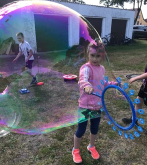 Der absolute Renner war in diesem Jahr das Seifenblasen-Spiel. Hier wurden mit viel Eifer richtige Kunstwerke von unseren Kleinen gezaubert.