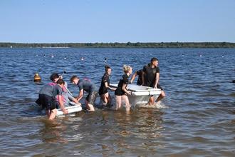 Das Wasser des Stausees war bei den 17. Wasserfestspielen der Gemeinde Neuhausen/Spree am 13. und 14. Juni am Nordstrand der Talsperre Spremberg leicht vorgewärmt und die Sonne heizte ordentlich ein, so hatten die insgesamt 37 teilnehmenden Teams eine perfekte Wetterlage.