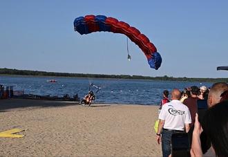 Ein besonderes Highligt des Tages war das Einschweben vom Pokal des Bürgermeisters. Vielen Dank an die Sportler von Skydive Cottbus, die trotz schlechten Windbedingungen perfekt gelandet sind.