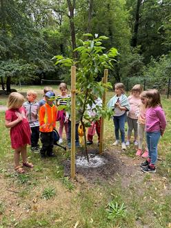 Die Freiwillige Feuerwehr Komptendorf hat dem Kinderhaus im Park einen prächtigen Kirschbaum geschenkt. Schon bald wird er nicht nur Schatten spenden, sondern auch leckere Kirschen für die Kinder tragen.
