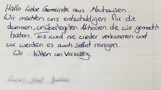 Die Jungs waren sich der Tragweite ihres Übermutes überhaupt nicht klar. Hier das Entschuldigungsschreiben der Jungs: