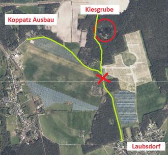 im Zuge der Aufwertung des Verkehrslandeplatzes Cottbus-Neuhausen zu einem luftfahrtaffinen Gewerbestandort ist es aus Sicherheitsgründen notwendig, das gesamte Flugplatzgrundstück dauerhaft einzuzäunen. Ein Teil des Weges zwischen Laubsdorf und Koppatz ist katastermäßig kein eingetragenes Wegegrundstück. Es gehört zum Flugplatzgrundstück und wird damit ebenfalls in die Umzäunung eingeschlossen. Somit wird der Weg dort dauerhaft unterbrochen.