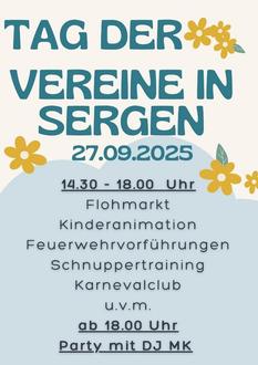 Erstmalig findet am 27.09.2025 ab 14.30 Uhr in Sergen am Dorfgemeinschaftshaus der Tag der Sergener Vereine statt.