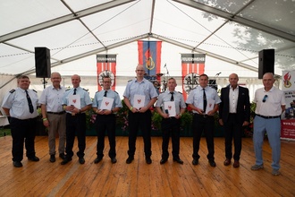 Der festliche Rahmen in Sergen wurde auch dafür genutzt, Kameradinnen und Kameraden für ihre besonderen Verdienste auf dem Gebiet des Brand- und Katastrophenschutzes zu ehren: