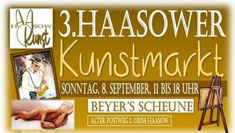 Zum dritten Mal zeigen Kunstschaffende aus Haasow ihre Produkte auf einem Kunstmarkt. Am Sonntag, dem 8. September, öffnet Familie Beyer zwischen 11 und 18 Uhr ihre Scheune im Alten Postweg 1, um künstlerische Werke von Haasower Bewohnern vorzustellen. So werden Objekte aus Eisen, Holz oder Ton, Textilien und Schmuckdesign, Floristik und Handwerkliches für den alltäglichen Gebrauch, aber auch Malerei und Grafik präsentiert. Zwei Haasower Autorinnen stellen ihre aktuellen Bücher vor, wovon Einblick durch eine Lesung gewonnen werden kann. Instrumentenliebhaber bekommen bei der Veranstaltung die Möglichkeit, ein Harmonium zu ersteigern.