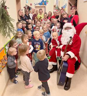 So ging es natürlich auch in der Kita Vogelnest zu. Und traditionell durfte bei uns ein leckeres Weihnachtsbuffet nicht fehlen. Christine und Susi zauberten viele leckere Köstlichkeiten. Liebevoll ausgestochene Sterne aus Möhren, Äpfel und sogar die Armen Ritter waren in Sternschnuppenform vorzufinden. Da haben wir wieder geschlemmt. Leider fehlte uns der Schnee und wir hatten Sorge, dass der Weihnachtsmann gar nicht kommen konnte, daher sangen wir „Schneeflöckchen Weißröckchen“. Und dann stand er da mit einer Gitarre. Nachdem wir ihn begrüßt hatten, sangen wir zusammen Weihnachtslieder und dann fragte er uns, ob wir auch Geschenke bekommen möchten. Das laute JA hallte durch den ganzen Kindergarten. Alle warteten nun gespannt auf den Sack mit den Geschenken. An dieser Stelle gilt unser Dank an alle Eltern, welche den Kindern ihre kleinen Wünsche erfüllten und an Frau Kathrin Vogel für die neue Spielkiste für den Garten. Weiterhin geht unser Dank von Herzen natürlich an den Weihnachtsmann. Den restlichen Vormittag sah man in den Gruppenzimmer zufriedene Kinder die mit den neuen Spielsachen spielten. Das Team vom Vogelnest bedankt sich auch für die vielen lieben Worte von unseren Eltern und den kleinen Aufmerksamkeiten.