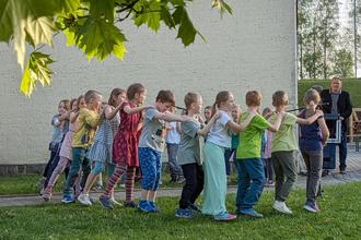 Mit kreativen Tiermasken, fröhlichen Liedern und Tänzen unter dem Maibaum und inspirierenden Gedichten, z. B. über den Kuckuck, begrüßten sie den lang ersehnten Frühling und begeisterten das Publikum. Zur Freude aller spielte Mariella zusammen mit ihrer Mutter auf der Geige. Ein lustiger Tausendfüßler-Tanz rundete das Programm ab.