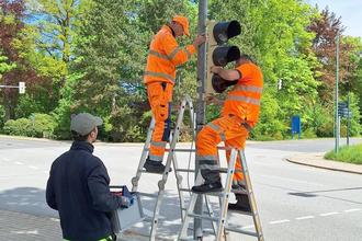 Eine zusätzliche Anzeige für die Fußgänger nach Betätigung des Anforderungstasters ist ebenfalls neu. Mit dieser Umrüstung konnte ein Stück mehr für die Verkehrssicherheit in unserer Stadt umgesetzt werden.