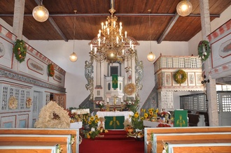 | - | 1676 Renovierung: es werden die Fenster vergrößert, eine Kirchenmauer neu gebaut, ein neuer Altar gebaut und ein neuer Predigtstuhl angeschafft. |