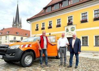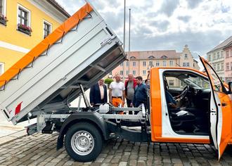 Die Mitarbeiterinnen und Mitarbeiter des Städtischen Bauhofes können sich über ein neues Fahrzeug freuen. Erworben wurde ein IZUSU D-MAX mit einer Single-Kabine und einem hydraulischen Dreiseitenkipper vom Autohaus Siebeneicher aus Dippoldiswalde.