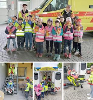 Am 22. Mai 2025 war schon wieder Flugwetter bei unseren Sammelbienen. Die Mutti von Veit hatte auf die Rettungswache eingeladen. Es waren so viele Dinge zu sehen, im Rettungswagen, in der Halle, die vielen Rettungsmittel, Verband anlegen, im Raum der Rettungssanitäter, die Puppe zum Üben. Es war aufregend.