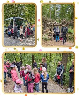 Der Tag begann an der ASB-Kindertagesstätte, von wo aus die Gruppe mit dem Bus zur Waldhusche nach Hinterhermsdorf gebracht wurde. Vor Ort wurden sie von drei Führerinnen empfangen, die alle mit viel Wissen und Begeisterung durch die spannende Waldhusche führten - über Stock und Stein und sogar durch einen Baumwurzeltunnel.