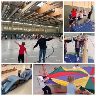 Ob beim Balancieren, beim Hindernisparcours mit Rollbrettern, Fußballspielen, unter dem bunten Schwungtuch oder beim Wackelparcours am Barren, für jeden war etwas dabei. Mit viel Freude und Begeisterung waren alle Kinder in Bewegung.