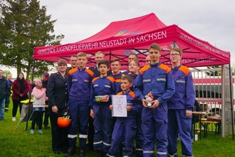 Jugendfeuerwehr besteht nicht nur aus feuerwehrtechnischen Themen und den üblichen Diensten, welche wir anhalten. Werte, wie Zusammenhalt, Kameradschaft und gegenseitige Unterstützung sind wichtig für ein gutes Team, auch außerhalb der Feuerwehr. Um uns auch hier stetig zu verbessern und voneinander zu lernen, trafen wir uns am 13.05.2023, 13:00 Uhr, im Krumhermsdorfer Park zum 8. Teamtag der Gemeindejugendfeuerwehr Neustadt in Sachsen. Unsere Gäste aus Großröhrsdorf-Biensdorf, Hohnstein und Langenwolmsdorf sowie alle Beteiligten Jugendfeuerwehren der Gemeinde Neustadt mit deren Ortsteilen aus Berthelsdorf, Krumhermsdorf, Polenz, Neustadt, Rugiswalde und Rückersdorf sowie die Kinderfeuerwehr Blaulicht-Bambinis aus Berthelsdorf und die Schalmeienkinder aus Polenz wurden durch die Gastgeber aus Krumhermsdorf und die Nachwuchsmusiker des Schalmeienorchesters Polenz begrüßt. Anschließend sollte der Tag auch schnell starten. Ein Spaßwettkampf mit verschiedenen Stationen wartete auf alle Teilnehmer, wozu diese in Gruppen eingeteilt wurden. Nach einer kurzen Einweisung starteten alle nacheinander auf dem Weg rund um Krumhermsdorf, um alle Stationen zu bewältigen. Diese verlangten von den Kindern und Jugendlichen verschiedene Fähigkeiten. Ohne ein funktionierendes Team sollte es schwierig sein, möglichst viele Getränkekästen an einen Baum hintereinander zu stapeln, einen Traktor schnell eine festgelegte Strecke zu ziehen, Feuerwehrschläuche zu flechten oder gemeinsam einen Hindernisparcours zu absolvieren. Aber auch Allgemeinbildung war an einigen Stationen gefragt, wie zum Beispiel die Heimatkunde, das Zuordnen von Blättern zu heimischen Bäumen oder das Schätzen von verschiedenen Entfernungen. Auch lernten alle etwas über die Instrumente des Schalmeienorchesters und konnten beim Beantworten von Fragen und dem Erraten von typischen Musikstücken punkten. Unsere jüngeren Mitstreiter zeigten beim Zuordnen von Gegenständen, was sie können. Auch die Betreuer der Gruppen mussten zu deren Ergebnis beitragen, indem sie möglichst schnell mit einem Schlauchboot über einen Teich paddelten. Nachdem alle dir Runde absolviert haben, waren die Mägen trotz kleinen Snacks und Getränken unterwegs nicht ausreichend gefüllt. Das konnte nun geändert werden, denn im extra errichteten Zelt im Park in Krumhermsdorf standen Nudeln mit Wurstgulasch und Käse bereit. Danach waren alle sehr gespannt auf die Ergebnisse des Spaßwettkampfes, welche in der nun folgenden Siegerehrung verkündet wurden. Bei guter Stimmung und musikalischer Umrahmung durch DJ Heiko klang der Tag aus und alle begaben sich nach und nach auf den Heimweg. Ein großer Dank gilt allen Beteiligten, welche den Tag für die Kinder und Jugendlichen ermöglichten. Außerdem danken wir der Küche des Seniorenpflegeheimes Stolpen für die Zubereitung des Essens und dem Feuerwehrverein Neustadt für die Bereitstellung des Festzeltes.
