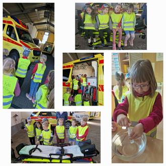 Am 27.05.2025 machten die Vorschüler einen ganz besonderen Ausflug. Es ging zur Rettungswache des ASB Ortsverbandes Neustadt/Sachsen e. V. Dort angekommen, wartete Herr Scholze bereits und begrüßte uns herzlich. Er führte die Kinder durch die verschiedenen Bereiche der Wache und erklärte, welche Aufgaben die Rettungskräfte haben und wie sie im Einsatz den Menschen helfen. Alle waren begeistert, als sie den Krankenwagen sahen und diesen sogar von innen besichtigen durften. Besonders spannend waren die Vorführung der Ausrüstung sowie das Ausprobieren der Transportliege. Diese wollten alle Knirpse unbedingt testen. Danach ging es für uns noch in die Rettungswache, wo wir die Räumlichkeiten begutachten konnten. Außerdem bereitete Herr Scholze noch eine kleine praktische Übung vor, bei der jeder Knirps eine Spritze (ohne Nadel) mit Wasser aufziehen und spritzen durfte. Die haben alle geschafft und waren sehr stolz darauf. Der Besuch beim ASB-Rettungsdienst war für die Kinder nicht nur sehr lehrreich, sondern auch ein unvergessliches Erlebnis. Sie konnten viele neue Eindrücke sammeln und einiges über die wichtige Arbeit der Rettungskräfte erfahren. Natürlich löcherten die baldigen Schulanfänger Herrn Scholze mit vielen Fragen. Diese beantwortete er geduldig und verständlich. Dafür ein großes Dankeschön an ihn. Ebenso für die tolle Führung und die spannenden Einblicke.