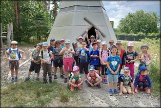 hieß es Anfang Juli für die größeren Kinder. Dank des RVSOE, die uns einen Bus zur Verfügung stellten und unserem Busfahrer Herrn Linke konnten wir doch noch nach Bischofswerda auf die Waldbühne fahren. Dort lernten wir Winnetou, Old Shatterhand, der als junges deutsches Greenhorn Charly gemeinsam mit dem erfahrenen Westmann Sam Hawkens zum Vermessen der neuen Bahnstrecke, in den Wilden Westen gekommen war, kennen. Wie auch im richtigen Indianerfilm waren Winnetou und Old Shatterhand erst Feinde aber nach einigen Konflikten und Kämpfen, welche mit Gewehren, Pistolen und Pfeil und Bogen stattfanden (aber keine echten Waffen), sogar Blutsbrüder.