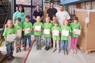 Am 06.06.2024 wanderten unsere Wildbienen zur Lehmann & Frommelt Thermoformung GmbH, wo seit 1990 Kunststoffformteile hergestellt werden. Frau Wolf empfing uns an der Anmeldung und führte uns in den Aufenthaltsraum. Beim anschließenden Rundgang durch die Produktionshallen staunten alle, welche verschiedenen Teile aus Kunststoff gefertigt werden.