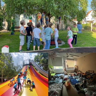 Unsere „Zwei - Tage Abschlussfeier‘‘ begann am Freitag in der Kita. Alle Blaumeisen reisten mit Koffer und Matratze an, denn die Kinder wünschten sich eine Übernachtungsparty. Dies war nicht der einzige Wunsch, denn die Kinder wollten in einen Freizeitpark. Gesagt, Getan! Wir fuhren mit Bus und Bahn ins Elbefreizeitland nach Königstein. Bei schönstem, sonnigen Wetter erlebten wir einen wundervollen Tag voller Spaß und Aktion, wobei jeder auf seine Kosten kam! Mit einem Eis gestärkt ging es zum späten Nachmittag zurück nach Neustadt. Das Abendbrot bestimmten auch die Kinder und wünschten sich Pizza und Pommes. Nachdem wir in der Kita wieder angekommen waren, machten sich alle bettfertig. Gemeinsam räumten wir unser Zimmer ein und verteilten die Matratzen im Raum. Als wir es uns gemütlich gemacht hatten, starteten wir unseren Film über den Beamer. Mit kleinen Naschereien und Kinderbowle war dann alles perfekt! Am nächsten Morgen wachten wir zufrieden auf, aber unser Frühstück mussten wir erst suchen. Wir folgten der Musik in den Garten und entdeckten unsere Familien, welche mit einem Frühstücksbuffet auf uns warteten. Gemeinsam machten wir uns an das Plündern des Buffets und genossen die Zeit. Das Highlight war natürlich das Ernten des Zuckertütenbaums und die Überreichung der Kindergartendiplome. Die letzten Wochen der Blaumeisen haben begonnen und bald werden sie das Nest verlassen!