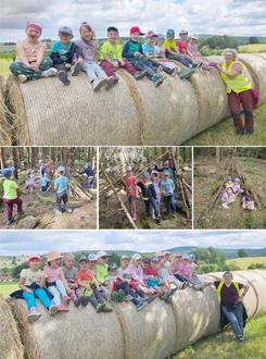 Am 25. Juni 2025 erlebten die Wildbienen und Hummeln einen ganz besonderen Vormittag in der Natur. Der Waldtag begann mit einer Wanderung, die die Kinder vorbei am Wildtiergehege hinein in den Wald führte. Dort angekommen, verwandelte sich dieser in einen Abenteuerspielplatz der besonderen Art.