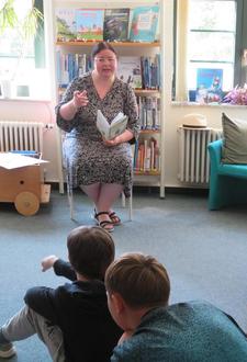 Am Freitagmorgen wurden die Kinder mit Musik auf dem Flur geweckt, bevor es ein stärkendes Frühstück in der Schulküche gab. Danach ging es erneut mit dem Bus nach Sebnitz, wo Frau Schüler aus der Stadtbibliothek bereits auf die Klasse wartete. Mit großer Aufmerksamkeit lauschten die Schülerinnen und Schüler der unterhaltsamen Lesung der Geschichte vom „Kleinen Klugscheißerchen“. Anschließend blieb noch genügend Zeit zum Stöbern, Lesen und Spielen in der Bibliothek.