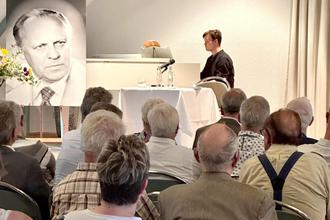 Der Autor Dr. Gerhard Brendler beim Vorlesen seiner Laudatio