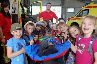 Das Kindergartenjahr geht zu Ende und so auch die Zeit für unsere Vorschulkinder. In dem gesamten Jahr lernten wir viel Neues und unternahmen fantastische Ausflüge. So waren wir Ende Juni auch in der ASB Rettungswache in Neustadt - ein tolles Erlebnis mit Frau Gläser. Wir konnten uns alles ganz genau anschauen und unsere Fragen loswerden. Wir fanden sogar alle in einem Krankenwagen Platz. Was es da alles so gibt in den zahlreichen Schubladen und kleinen Schränkchen. Und als wir ganz leise waren, hörten wir sogar die Stimmen aus dem Funkgerät. Es war schon ein Erlebnis. Wir danken Frau Gläser für die schöne und interessante Führung!