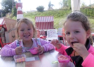 Sommerzeit ist Reisezeit, das weiß auch der kleine freche Rabe aus dem ASB-Kinderhaus „Pfiffikus“ und hat seine Schützlinge in der Ferienzeit zu einer Reise in die Welt eingeladen. Jeder bastelte sich einen Reisepass und schon konnte es losgehen. Das erste Ziel war „Belle Italia“. In einem Koffer entdeckten die Kinder verschiedenste Dinge, die typisch für dieses Land sind. Sie lernten die Farben der Flagge kennen, suchten Italien auf der großen Landkarte und fanden gemeinsam heraus, dass es von oben betrachtet wie ein Stiefel aussieht. „Pasta, Pizza und Gelato“ waren ein großes Thema, wobei die Kinder es toll fanden, dass man aus Makkaroni-Chips auch Ketten fädeln kann und „Pizza backen“ auf dem Rücken eines Freundes eine entspannende Massage ist. An heißen Tagen wurde der Sandkasten mit viel Wasser zum Gardasee, in dem die Kinder nach Herzenslust matschen konnten und auf der Wiese wurde zu italienischen Rhythmen das Tanzbein geschwungen.