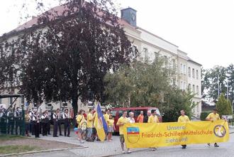 Umzug der Schillerschüler, auch der Schriftzug am Gebäude war bereits abgebaut