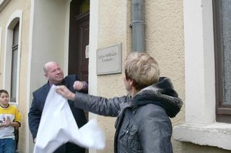 Enthüllen der Namenstafel durch Klaus Anders und Waltraud Döring