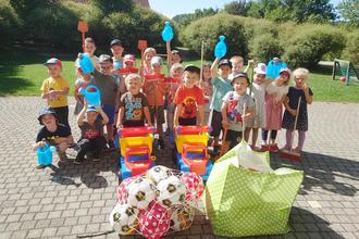 Aber bei uns Kindern gibt es nicht nur Bauarbeiter, sondern auch Hand-, Fuß- und Volleyballer. So bekamen wir gleichzeitig von der Kita noch ganz viele neue Bälle geschenkt. Na da können wir nur hoffen, dass in nächster Zukunft nicht so viele Regentage kommen.