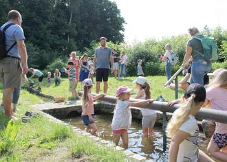 Am 18.06.2025 lud das ASB-Kinderhaus „Pfiffikus“ Neustadt ihre Kinder und deren Angehörigen zum Familienwandertag ein. Der Rabe Pfiffikus war auf Urlaubsreise gegangen und hatte den Pfiffiküssen ein kleines Rätsel dagelassen. Sie sollten verschiedene Stationen in Neustadt finden und dort Aufgaben lösen. Die erste Station befand sich im Athur-Richter-Park mit Zielwerfen. Dabei wurden auch gleich die Schwanenküken und die groß gewordenen Entenküken besucht. Dann ging es weiter zum Spielplatz am Bruno-Dietze-Ring, wo verschiedene Naturmaterialien gesammelt werden sollten. Den Schluss bildete eine Runde im Wassertretbecken sowie Entenangeln, wunderbar zum Erfrischen an dem warmen Tag.