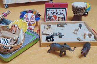 Die vorletzte Ferienwoche war angebrochen und Pfiffikus hörte wieder einmal seltsame Geräusche aus seinem ASB-Kinderhaus. Das klang nach Löwengebrüll, Affengeheul, Trommeln, Regenstäben und Rasseln. Ach ja, dachte der kleine Rabe, die Kinder sind ja auf Weltreise und wollten die letzten beiden Ferienwochen in Afrika verbringen! Passend zum Thema war die Aula geschmückt und im Reisekoffer befanden sich die herrlichsten Anregungen zum Basteln und Spielen.