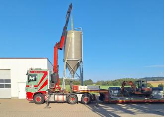 Antransport des neuen transportablen Puffersilos