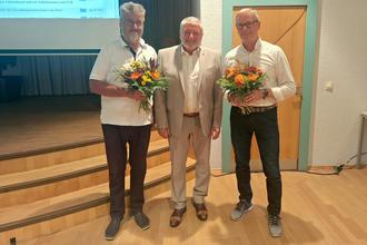 Bürgermeister Peter Mühle (Mitte) mit seinem ersten Stellvertreter Claus Hörrmann (links) sowie seinem zweiten Stellvertreter Frank Hentschel (rechts).