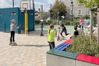 Mit viel Freude und Geschick fuhren die Mädchen und Jungen über den Hof, übten kleine Tricks oder drehten einfach fröhlich ihre Runden. Auch die Erzieherin und der Erzieher ließen es sich nicht nehmen, selbst die Rollen unter die Füße zu schnallen - sehr zur Begeisterung der Kinder.