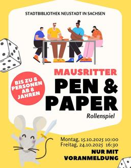 ist ein Überbegriff für interaktive und kooperative Rollenspiele, die gemeinsam erzählte Geschichten und Problemlösung miteinander verbinden. Wie der englische Name bereits verrät, benötigt man keine Technik oder aufwendige Materialien, es genügt lediglich Stift, Papier, einige Würfel und eine Menge Fantasie. „Mausritter“ ist ein solches fantasievolles Rollenspiel, bei dem die Spielenden in selbst ausgedachte Rollen kleiner Mäuse schlüpfen und gemeinsam ein von der Spielleitung geführtes Abenteuer in einer großen, gefährlichen Welt erleben. Das Spielen basiert auf Vorstellungskraft und Gesprächen, wobei an bestimmten Stellen das Werfen von Würfeln über das weitere Vorgehen bestimmt. Die Welt ist offen und endlos, es gibt keine Grenzen, außer den Zufall der Würfel.