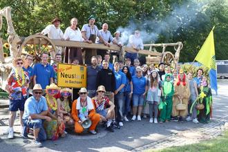 Unsere Stadt präsentierte sich beim Festumzug zum „Tag der Sachsen“ am 7. September 2025. Mit dabei war unsere Mariba Freizeitwelt mit coolen Beats und Urlaubslaune, welche auch das Wohnmobil der Capron GmbH noch erhöhte und abschließend wurde die Geschichte vom Goll´schen Rad von unseren Bauhofmitarbeitern sehr anschaulich dargestellt. Dazwischen begeisterten Torsten Schlegel und seine Mitglieder des Theatervereins Schillers Schüler in bunten Kostümen und mit kleinen Show-Einlagen die Zuschauer. Die Schulleiterin Thea Hälsig mit Schülern unserer Friedrich-Schiller-Oberschule und Mitarbeiter der Stadtverwaltung sorgten für das Drumherum bei den drei Gefährten. Vielen Dank an alle, die mitgemacht haben und uns so schön in der Öffentlichkeit präsentiert haben. Wie hieß es doch im Video des MDR: „Neustadt in Sachsen grüßt Sebnitz, nein, Neustadt in Sachsen grüßt die ganze Welt!“.