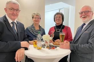 Im Anschluss an den Festakt fanden sich die Gäste zum Stehempfang ein, v. l. Stadtrat Christian Kowalow, Steffi Kowalow, Leiterin des Hohwaldchors, Dipl.-Med. Cordula Gutzke und Bürgermeister a. D. und Ehrenbürger Manfred Elsner