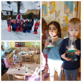 Obwohl es die letzten Tage eisig kalt war, ließ der Schnee auf sich warten. Somit beschlossen wir Sonnenknirpse, den Schnee ins Zimmer zu holen. Doch wie soll das gehen?