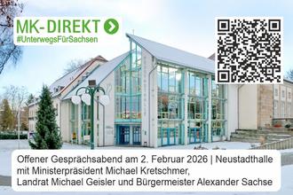 In der Reihe „MK-DIREKT“ besucht der Ministerpräsident des Freistaates Sachsen am Montag, dem 2. Februar 2026, Neustadt in Sachsen.