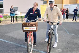 Gemeinsam mit Mary Altmann, Bereichsleiterin der Kinder-, Jugend- und Familienarbeit im ASB-Ortsverband, probierte Bürgermeister Alexander Sachse die Strecke aus, Foto: Jens Vogel