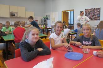 Als nächstes nutzten wir Frau Hedrichs Getreideflocker. Dieser ließ sehr schnell aus Haferkörnern Haferflocken entstehen. Nun konnten wir unser Müsli zubereiten, mit Jogurt, Milch, Haferflocken, Honig, Cornflakes, Erdbeerchips und Obst. Das war lecker! Zum krönenden Abschluss gab es Popcorn aus der Popcornmaschine. Dazu gaben wir Öl, Zucker und Maiskörner in die Maschine. Danach warteten wir, bis die Maiskörner aufgeploppt waren. Nun bewegten wir den Griff an der Popcornmaschine, mit dem man das Popcorn in eine Schale schütten konnte. Endlich war das Popcorn fertig. Wir haben mehrere Durchgänge gemacht, damit jeder etwas abbekam. Die Zubereitung des Popcorns hat Spaß gemacht. Es hat allen sehr gut geschmeckt.
