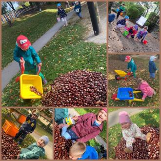 und bringt uns allen warmes, sonniges aber auch stürmisches Wetter. Der Wind pustete in unserem Garten so viele Kastanien von den Bäumen, dass es für uns alle ein riesen Spaß war diese einzusammeln. Wir großen und kleinen Knirpse hatten im Nu viele Kisten, Eimer und Sammeltaschen mit den Früchten gefüllt. Jedoch blieb die Frage: Wohin mit diesen vielen gesammelten Schätzen? Ein Teil wurde zum Basteln benötigt, ein anderer mit nach Hause genommen und trotzdem waren noch so viele da!