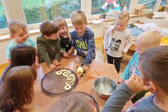 Wie versprochen, stellen wir heute unser neues Projekt vor. Wir fingen nach den Herbstferien an, uns auf die Spuren von Pfarrer Sebastian Kneipp zu begeben und uns an seinen „fünf Säulen des Lebens“ zu orientieren. Welche die Lebensordnung, die Ernährung, die Bewegung, die Wasser und sonstige Anwendungen und die Kräuterheilkunde beinhaltet. So werden wir weiter lernen, wie man sich gesund ernährt und welche Kräuter für welches Wehwehchen helfen. Für den Winter haben wir uns schon Apfelringe hergestellt und die Schalen getrocknet, um uns einen leckeren Tee zu zaubern. Da mittwochs fast immer unserer Sporttag ist, wird dieser auch unser Bewegungstag werden. Und was auch toll ist, wir sind fünf Tage in der Woche in der Kita und es gibt fünf Säulen. So wird jeder Tag für eine andere Säule stehen. Auch wollen wir wieder einmal unser Mittagessen selber kochen, wo wir natürlich auch Kräuter verwenden. Und hoffentlich schneit es ganz viel im Winter, dass wir öfter Schneetreten können. Auf jeden Fall wird kein Bildungsbereich zu kurz kommen, da es für alle Kneippsche Angebote gibt. Sogar die Adventszeit lässt sich in unsere fünf Säulen unterbringen. Wer es uns nicht glaubt, wird es in unseren nächsten Artikeln lesen können, die wir wie immer mit einem Bild versehen werden.