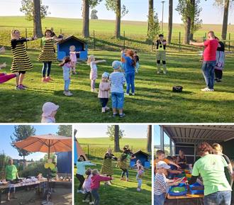 Am 20.09.2024, dem Weltkindertag, konnten wir bei traumhaftem Wetter unser Kindergartenfest feiern. Viele Eltern, Großeltern, Urgroßeltern, Tanten, Onkel und ehemalige Kindergartenkinder waren auf unsere Einladung hin gekommen. Es gab Langos, Pommes, Zuckerwatte und Getränke. Sehr gut besucht waren die Sandbildgestaltung und Tombola. Gefreut haben uns auch mittanzende Eltern und Kinder. Nun sind wir noch auf die lustigen Fotos der Foto-Box gespannt, vielen Dank an den Sponsor, wie auch an die Sponsoren der Zuckerwattemaschine. Herzlichen Dank möchte ich auch meinen Kolleginnen sagen, die durch ihren Einsatz zum Gelingen des Festes beigetragen haben.