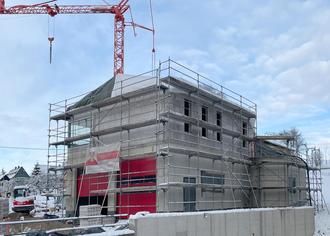 betoniert. Danach forderte der Rohbau aus Stahlbeton und Kalksandsteinmauerwerk viele weitere Arbeitsabschnitte, welche aber bis zum Wintereinbruch durch das Bauunternehmen abgeschlossen werden konnten.