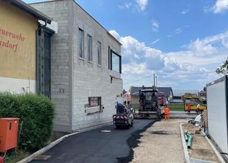 Asphalteinbau um das Feuerwehrgerätehaus im Mai 2024