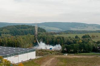 Ein besonderes Datum, dass noch allen in Erinnerung ist, war die Sprengung des letzten Zeitzeugens, des 102 Meter hohen Schornsteins, am 25. September 2019, um 14:00 Uhr mit sechs Kilo Sprengstoff. Über viele Jahrzehnte hinweg war er das sichtbare Wahrzeichen der Kirschallee. Das Heizhaus mit dem Schornstein diente zur Versorgung des Fortschritt Landmaschinenbetriebes sowie der Wohnbaugebiete Heinrich-Heine-, Maxim-Gorki- und Friedrich-Engels-Straße. Das Kesselhaus wurde in den Jahren 1982/1983 und der Schornstein 1984/1985 im Auftrag des Fortschrittkombinates erbaut.