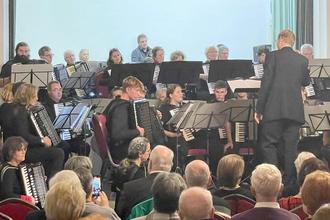 Gemeinsames Musizieren des Akkordeon-Clubs Meckenbeuren und des Dresdner Akkordeonorchesters e. V. beim Konzert im Erbgericht Berthelsdorf